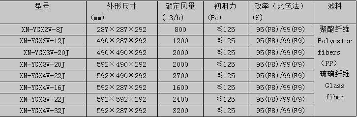 中效过滤器规格参数: